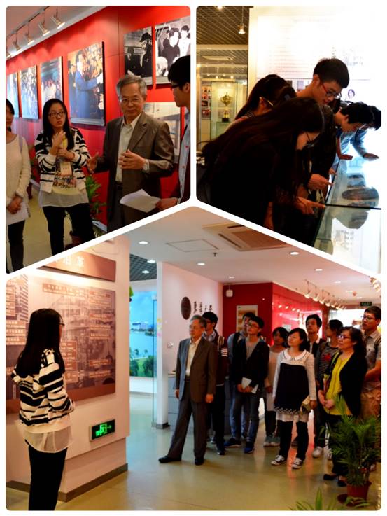 入党积极分子党校学员们在认真听取校史馆讲解员的详实讲解,关工委老教授们一边参观一边向同学们介绍他们所经历的精彩的东华历史,特别是关工委卫玲琍老师结合前段时间在学校热映的话剧《钱宝钧》,给学员们讲述了更多钱老和他的弟子们感人至深的事迹。