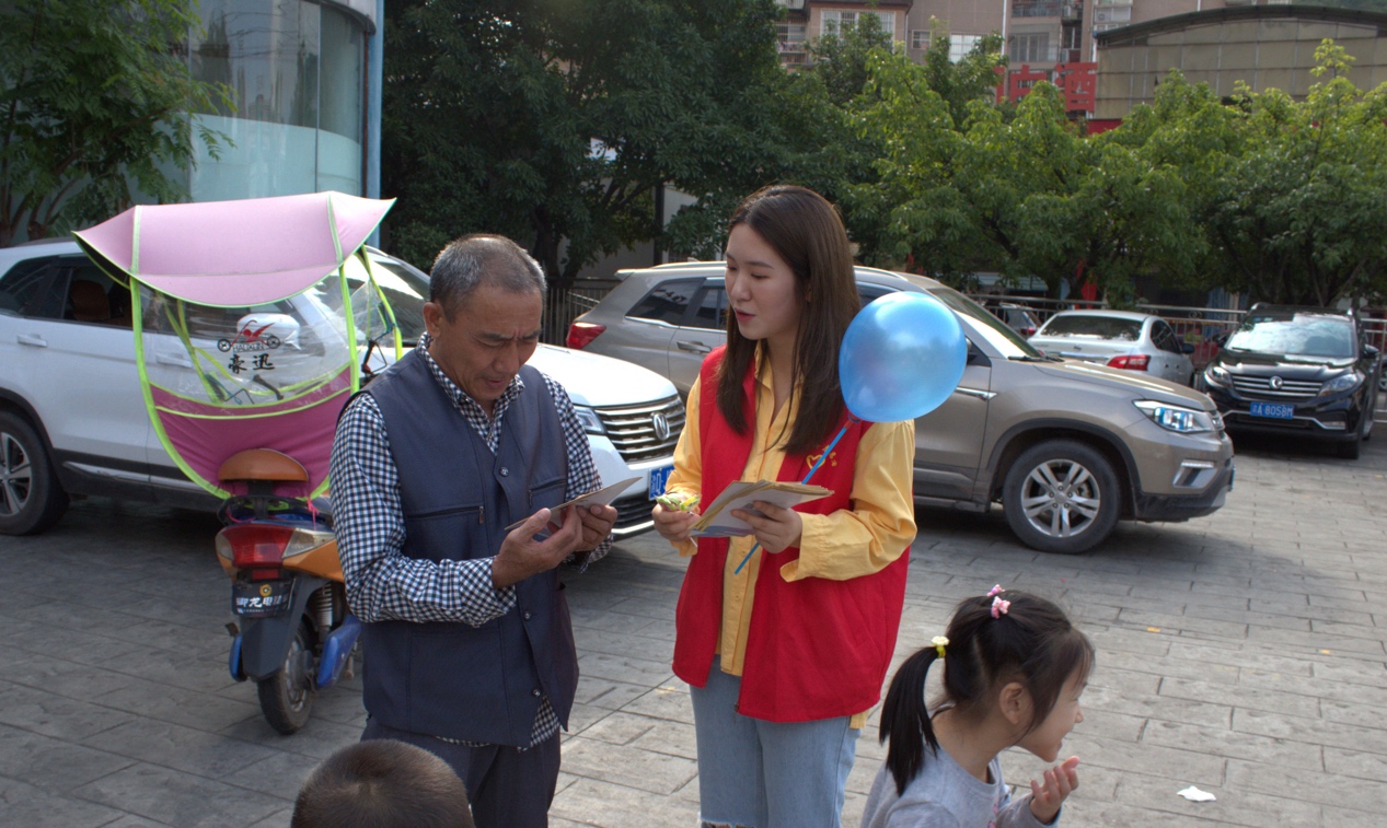 (西部志愿者李丹阳向社区居民进行志愿讲解)