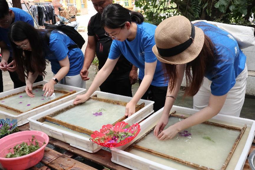 (实践团体验傣纸制作)